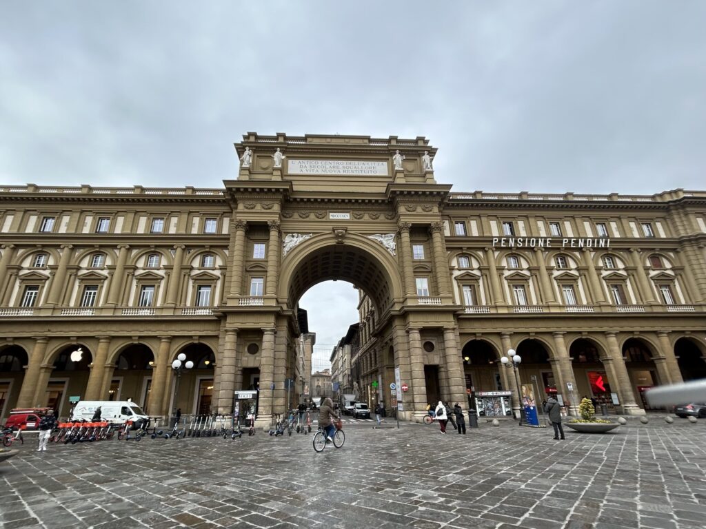 フィレンツェ中央駅から街並みを楽しみながら、サンタ・マリア・ノヴェッラ広場、レプッブリカ広場を経て、ウフィツィ美術館まで歩きました。