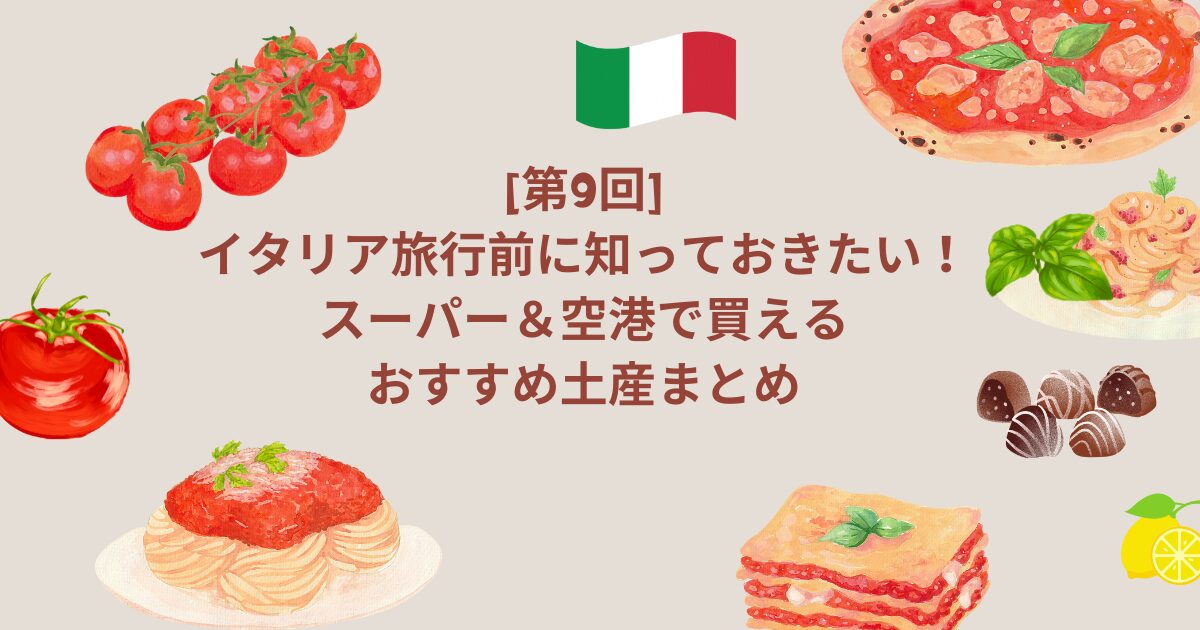 今回は、旅行準備編として、イタリアで手軽に買えるばらまき用土産や自分用土産、スーパーで手に入るインスタント食品をまとめました。