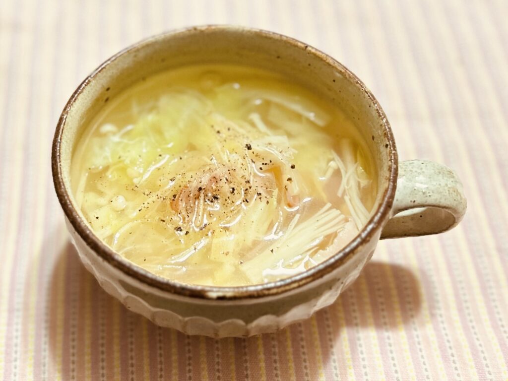 - キャベツ・えのきを加え、柔らかくなるまで煮る。