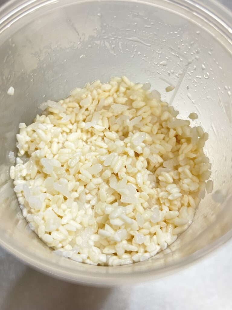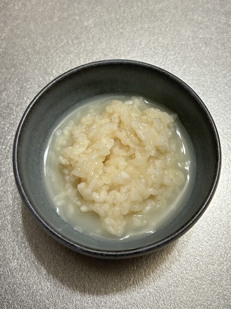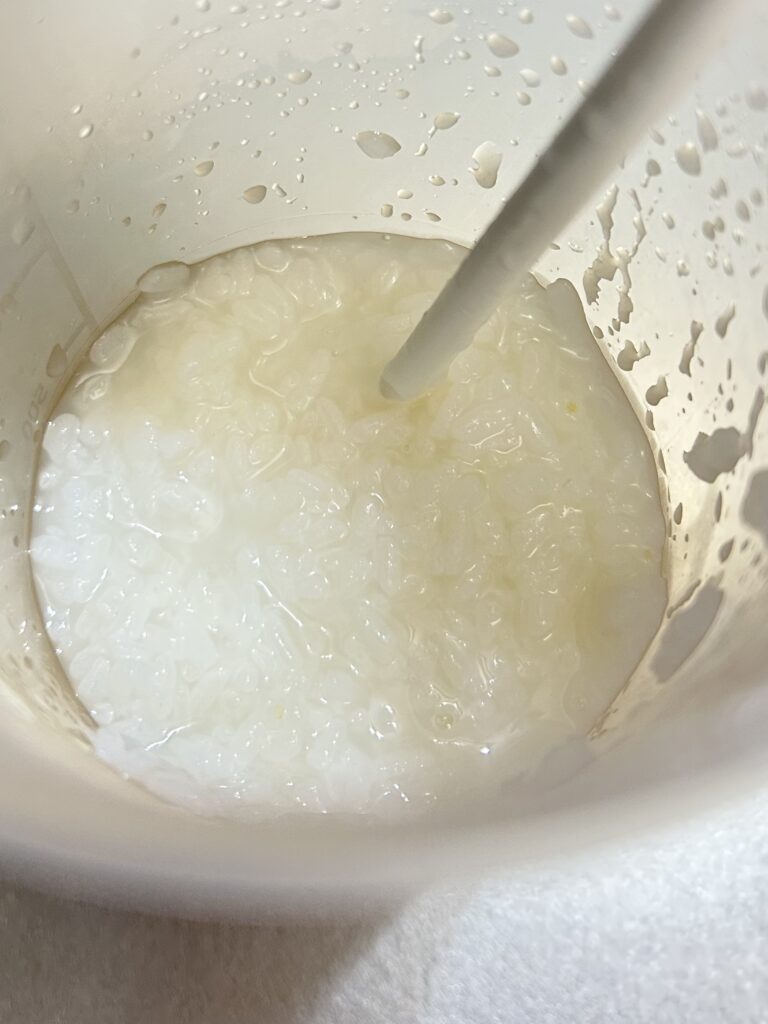 - 清潔な容器にごはんと熱湯を入れ、よく混ぜる