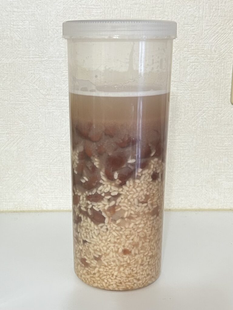 母が「豆でも作れるの?」と興味を持ったので、一緒に豆甘酒も作りました。ご飯は、使いません。
